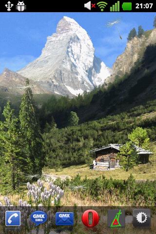 To set this Mountain Live Wallpaper as your live wallpaper, please use the supplied app ('Mountain Summer 3D') or long-press an empty space on your home screen, then select the 'Wallpaper' menu button, and 'Live Wallpapers'. From there, choose 'Mountain Summer 3D Live Wallpaper' and then click 'Set wallpaper'. To customize Options, select 'Configure' in the 'Wallpaper'-menu or click 'Preferences' in the Mountain Summer wallpaper app.